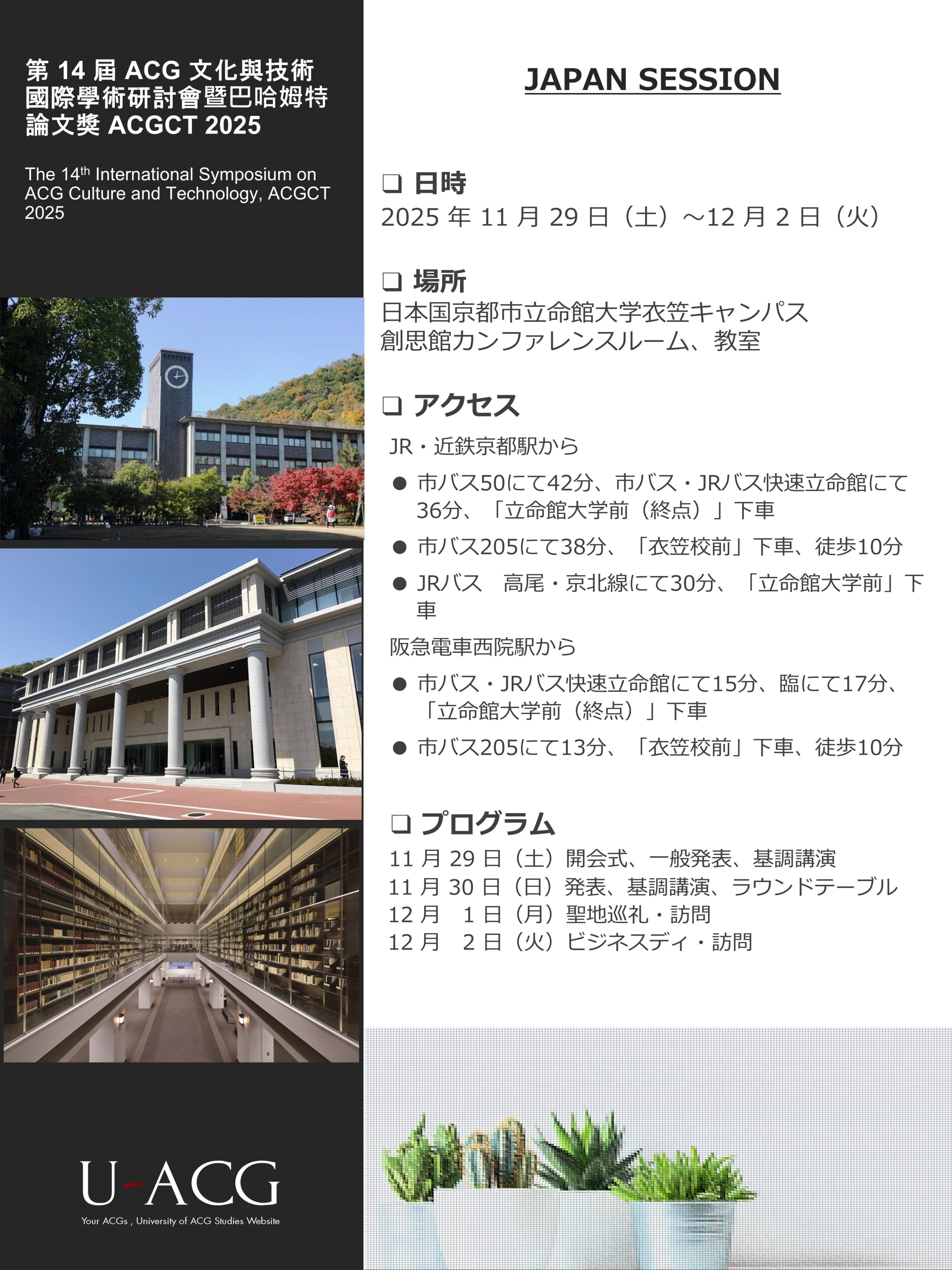Since 2012, ACGCT has served as a vital platform across Asia for researchers and industry experts to share the latest findings in ACG (Anime, Comics, and Games) culture and technology. As popular culture undergoes a global paradigm shift, fostering mutual understanding and collaboration between academia and industry is more critical than ever.